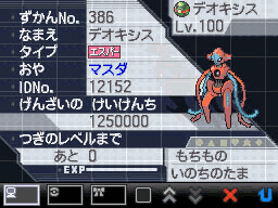 Este Deoxys irá está no nivel 100, com a habilidade pressure, e com os movimentos: Nasty plot e Dark pluse, que normalmente ele não pode aprender; e Recuver e Psycho boost . Esse evento terá seu inicio 15/12 e término 23/12.